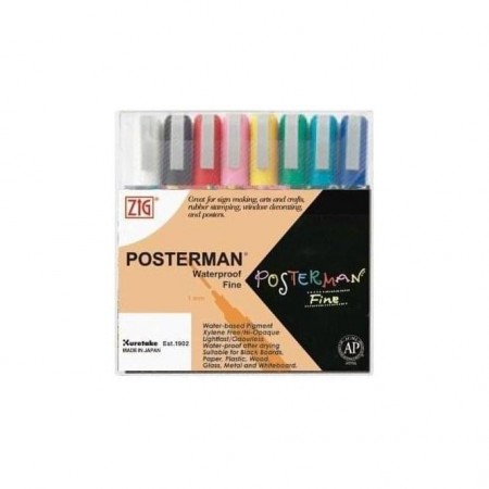 Marker Pen Packs - Zig Posterman Waterproof Fine PMA-20 Set (8) by Zig